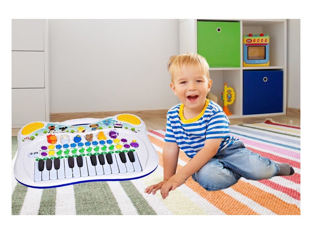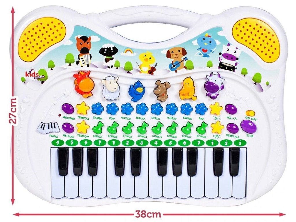 A Cartoon Piano állatokkal ellátott, többfunkciós gyermek zongora többféle szórakozást kínál a gyerekeknek. Az egyik módban állati hangok szólalnak meg, a többi gomb háttérzenét és vidám dallamokat indít el. A zongora képes felvenni és lejátszani a gyerek dallamait, lépes a hangerőszabályozásra, a tempó változtatásának lehetőségét és a klasszikus zongora funkcióját is kínálja. A játék 2 éves kortól alkalmas.