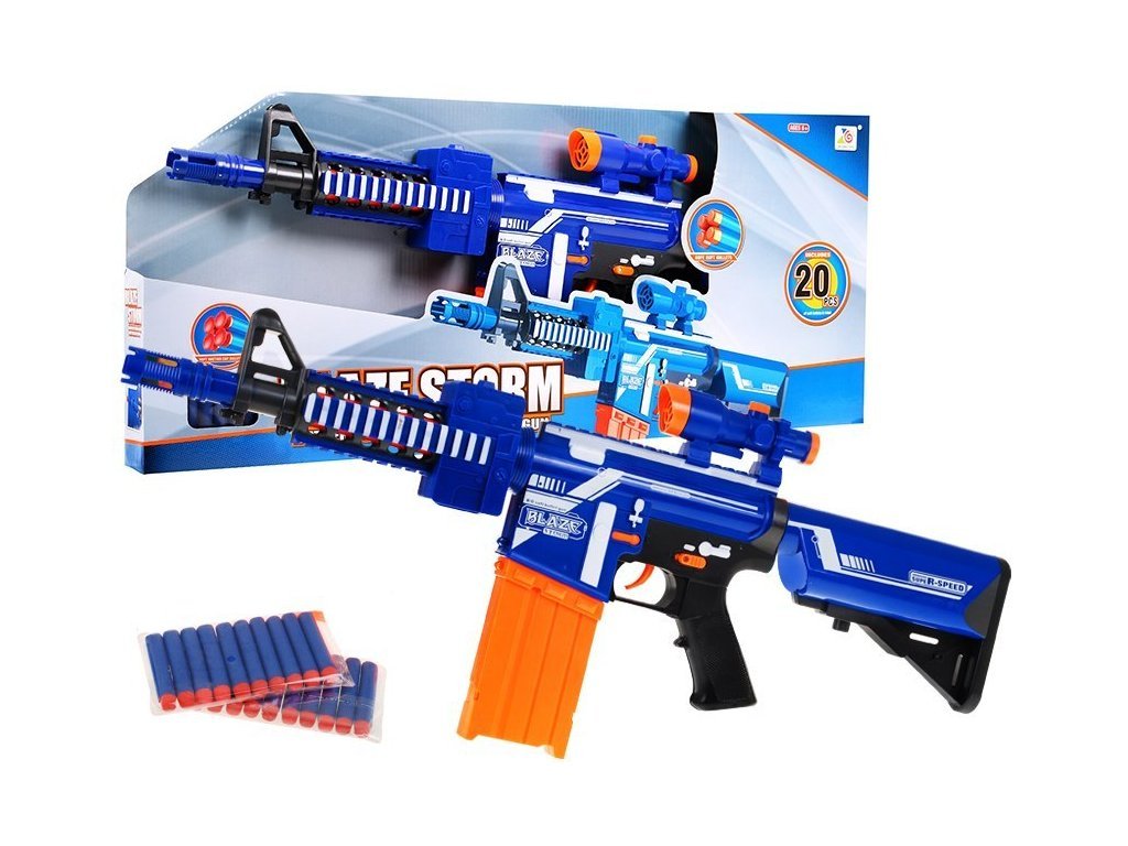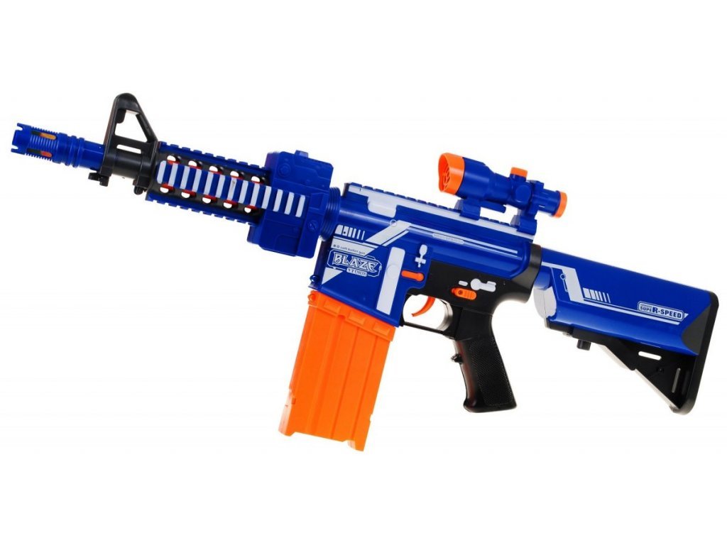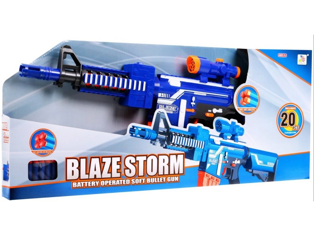 A Blaze Storm gyermek félautomata gépfegyver minden fiú álma. Ezt a precíz, félautomata gépfegyver távcsővel, lágy töltényekkel lehet megtölteni, ami azt jelenti, hogy ezzel a játékkal teljesen biztonságos játszani, és nem áll fenn a gyermek sérülésének veszélye. A ravasz egyetlen meghúzása esetében egyet lő, hosszabb ideig tartva pedig hármat is lő. Ez nagyszerű szórakozás a fiúk számára, és elhiheti, hogy az apukák is szívesen fognak játszani ezzel a gépfegyverrel.