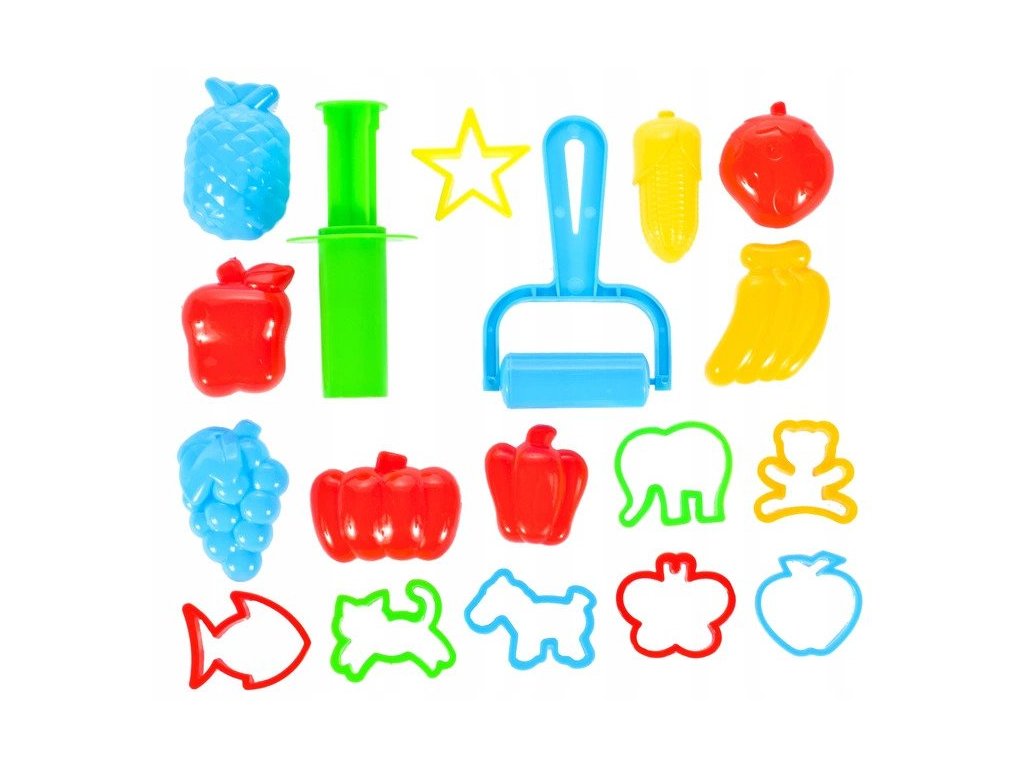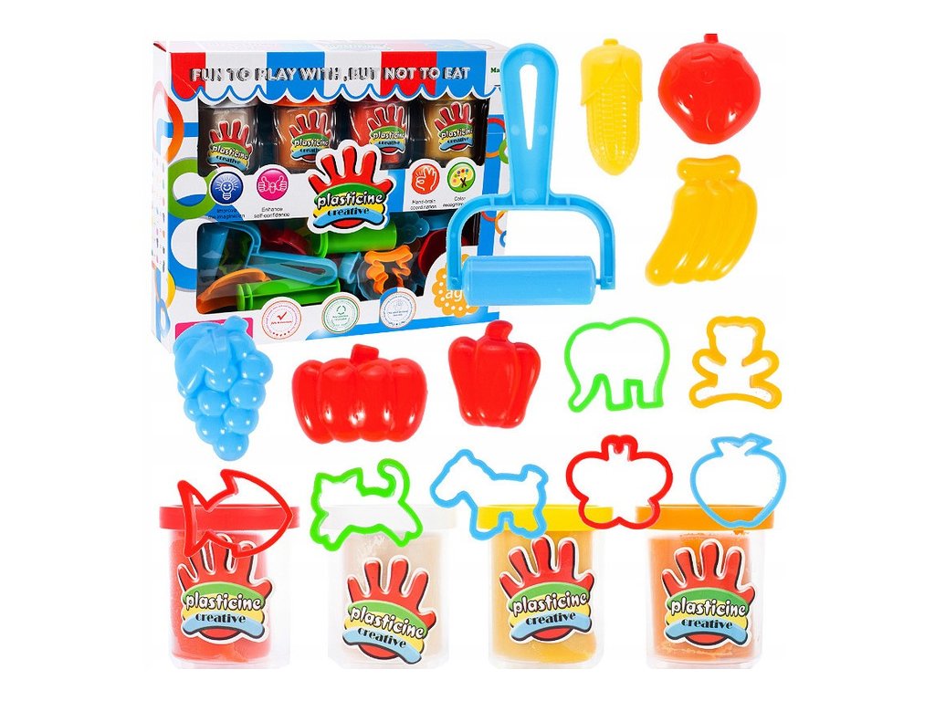 Creative Doh modellezős gyurma formázó készlet mint gyerekeknek úgy felnőtteknek egyaránt egy tökéletes játék. A készletben összesen 4 különböző színű gyurmatégely található. A 16 darab különböző alakú forma(gyümölcs, zöldség, állatkák) henger, és gyurma töltő is a készlet részét képezi. A kiegészítős gyurmakészlet korlátlan mennyiségű ötlet lehetőséget nyújt gyerekének a gyurma alakok tervezésére, építésére, összerakására. Kiemelten fejleszti a gyerekek kézügyességét. A gyurmával és kiegészítőivel való játék megfelelő támogatást nyújt a gyerek fejlődésére. A játék 3 éves kor feletti gyerekeknek ajánlott.