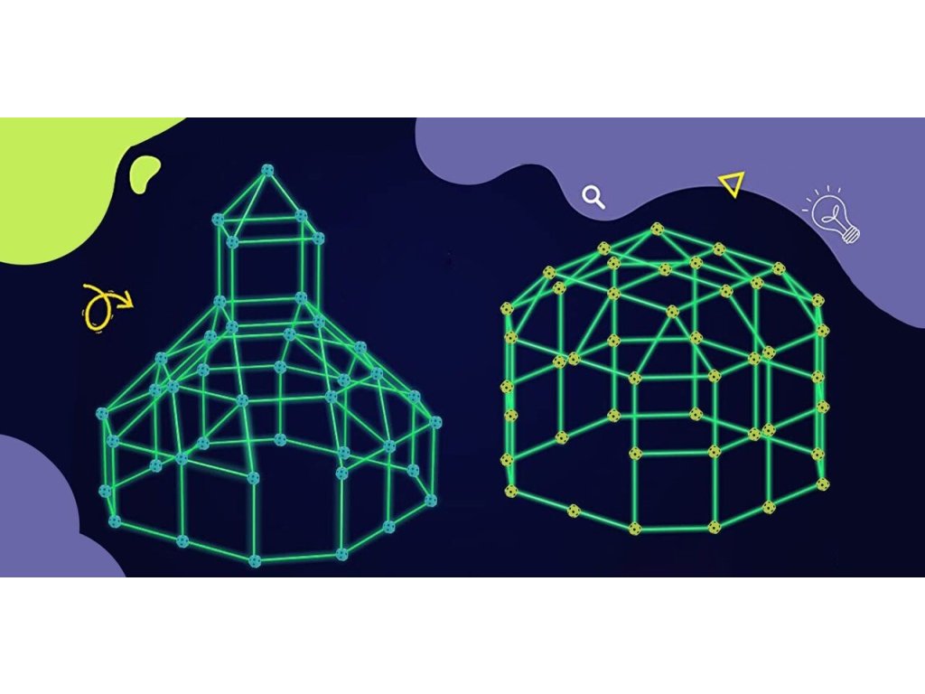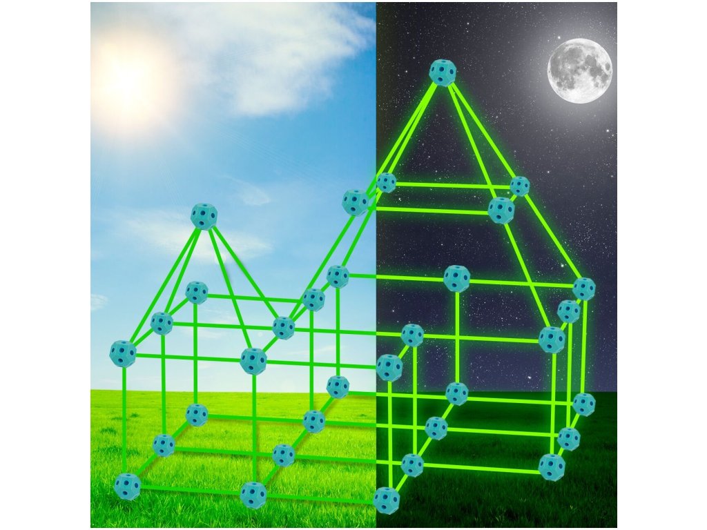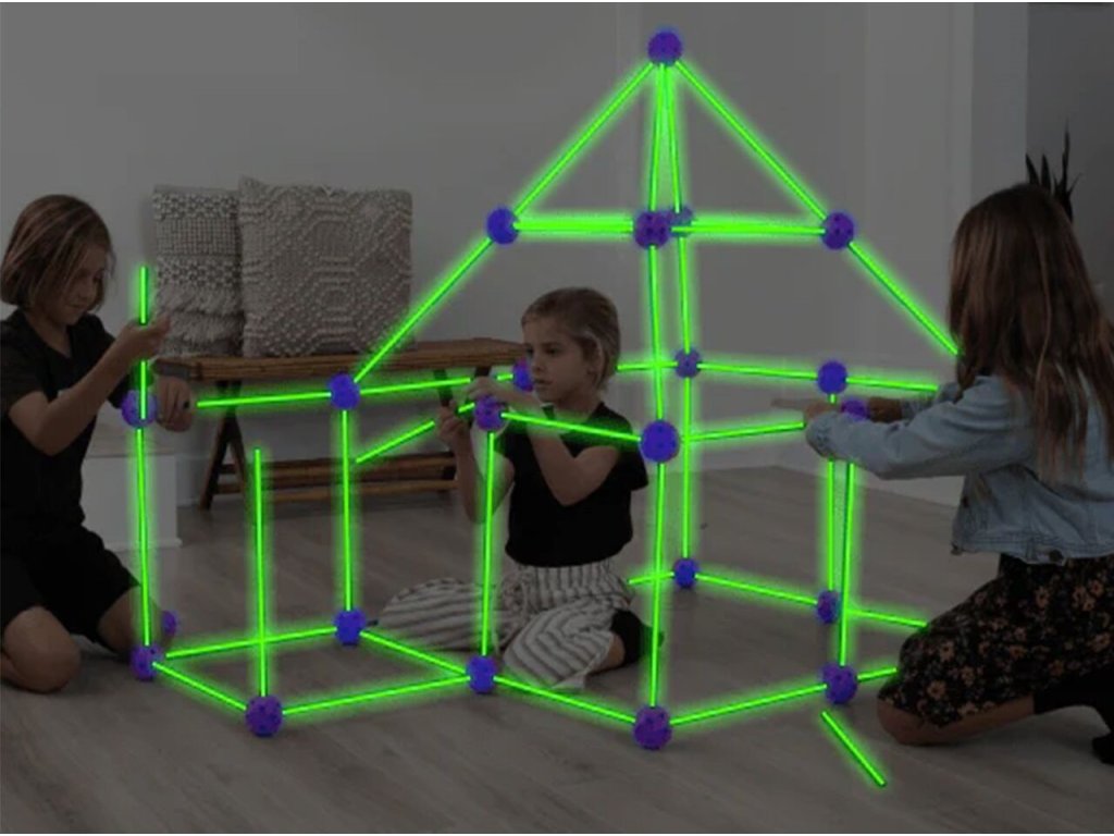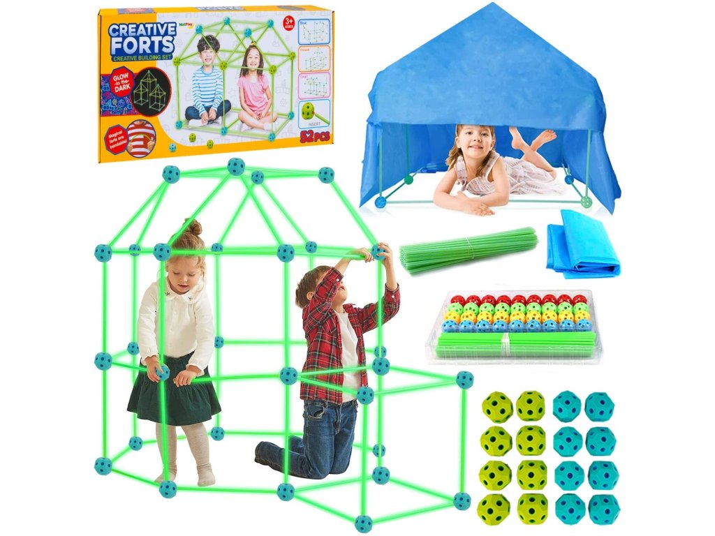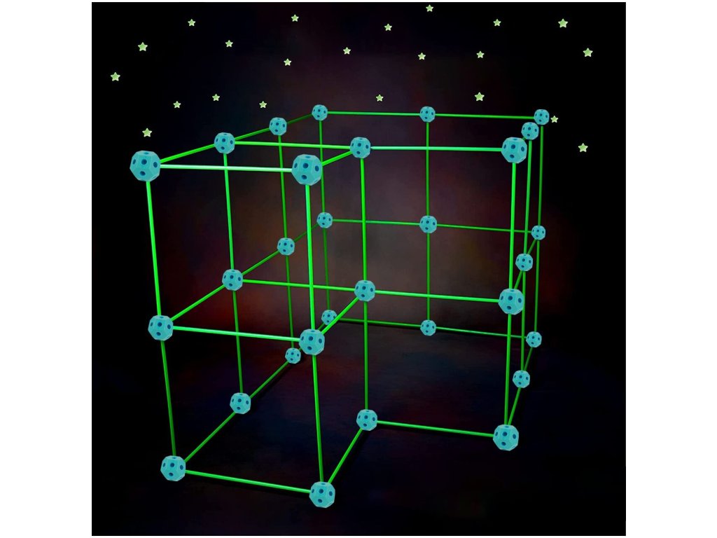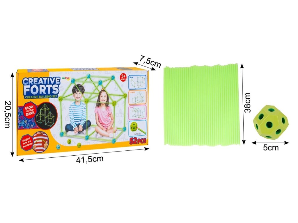 A Creative Forts világító építőkészlet ideális játék minden kis építő számára. Összesen 52 elemből áll. A sötétben világító pálcák és az összekötő alkatrészek segítségével végtelenül sokféle szerkezet hozható létre. A játék 3 éves kortól alkalmas.