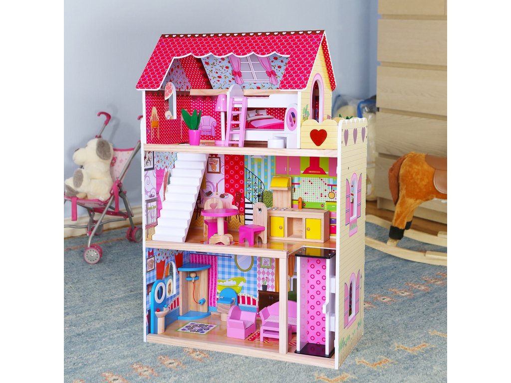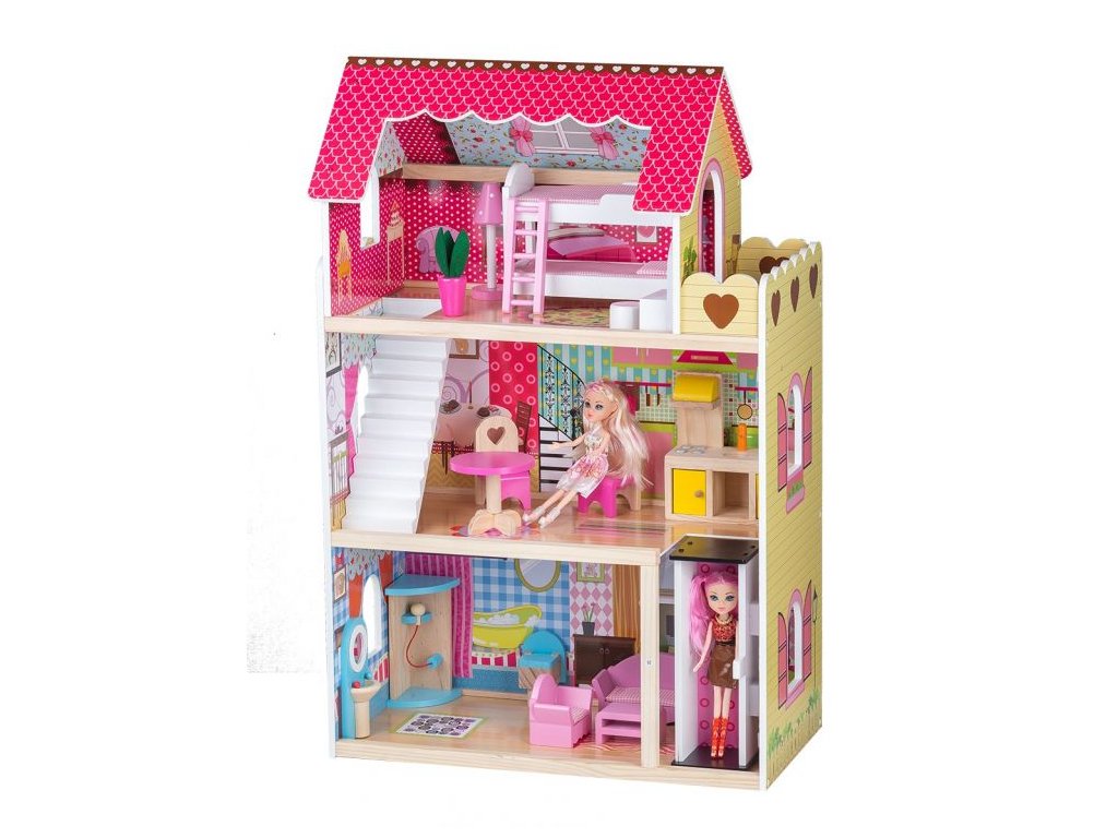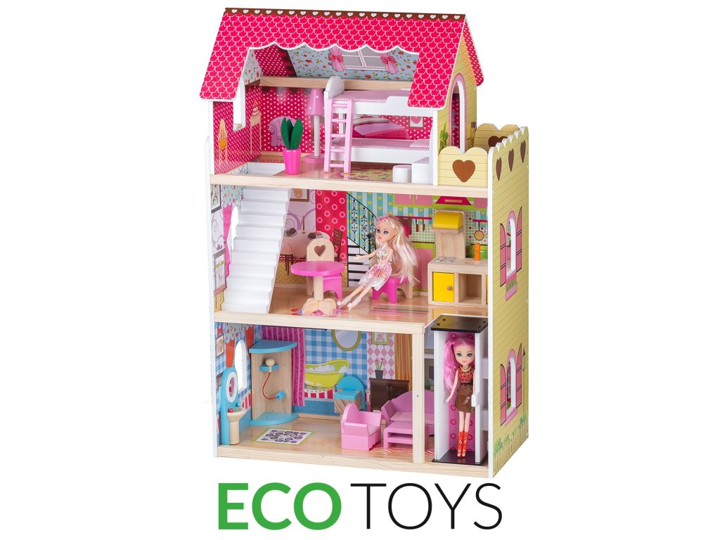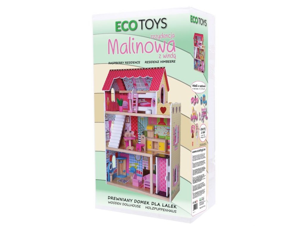 Ecotoys fa játék babaház Málna lifttel + 2 baba