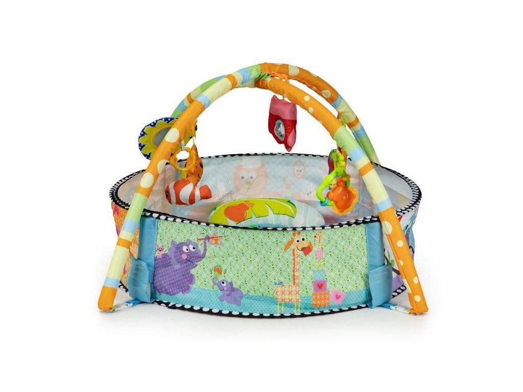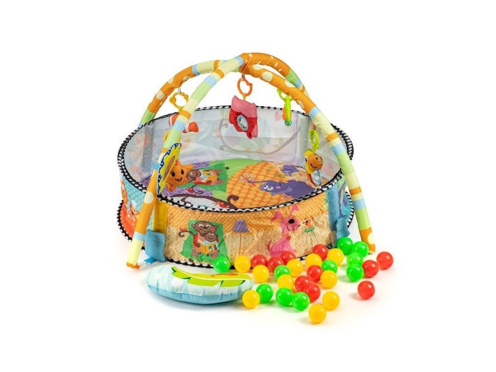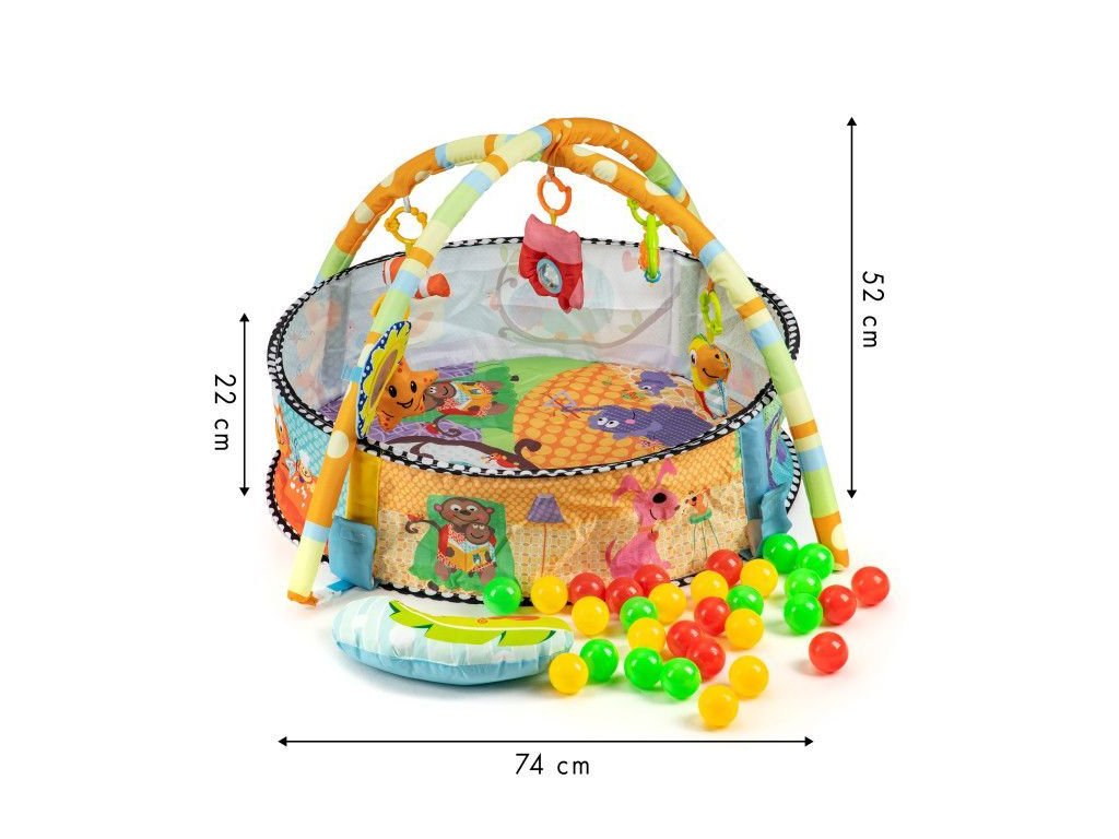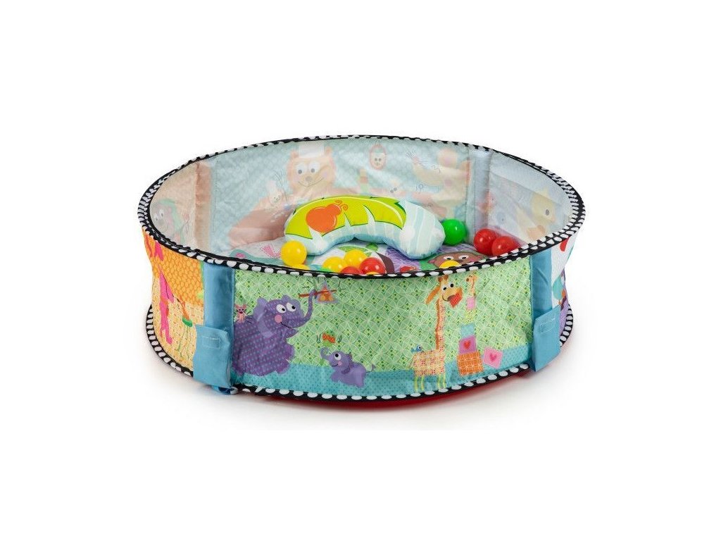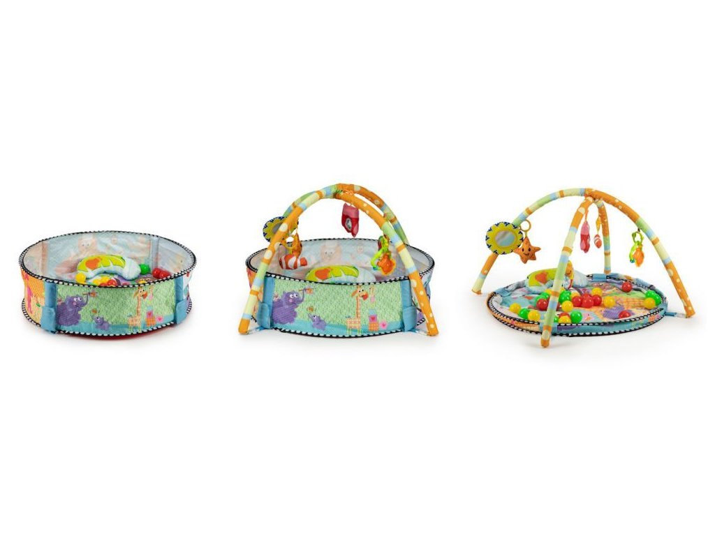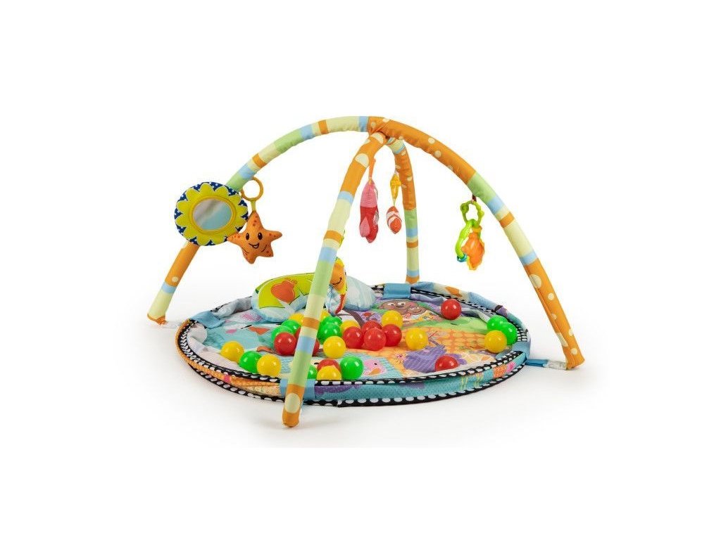 Az Ecotoys Funny Ocean színes játszószőnyeget 30 labdával már születésétől fogva ajánlott gyermekének. A játszószőnyeg tartozéka két rúd függő játékokkal, amelyek közül az egyik, mint biztonságos tükör van kialakítva. Az élete első szakaszában a gyermek a hátán játszik és megfigyelheti a függő játékokat, amelyek felkeltik a kíváncsiságát. A nagyobb mozgásokat is levégezni képes gyermekeknek az oldalfalak könnyedén felemelhetők, így biztonságos kerítést alakítva ki. A játékok levehetők, így a gyermek külön is játszhat velük. A játszószőnyeg tartós, színes anyagból készült.