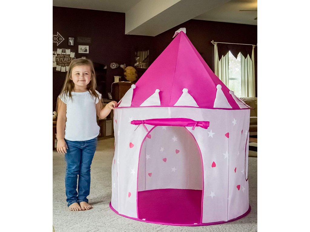 Az Ecotoys gyermeksátor Kastély a hercegnőnek ideális hely minden kislánynak. A vízálló aljzatnak köszönhetően beltéri és kültéri használatra is egyaránt alkalmas. A sátor bejárata állítható, így beállíthatja a sátorba behatoló fény mennyiségét. A felső anyag poliészter rózsaszín csillagokkal. A sátor felállítása nagyon egyszerű és gyors, amit különösen értékelni fog az áthelyezéskor.