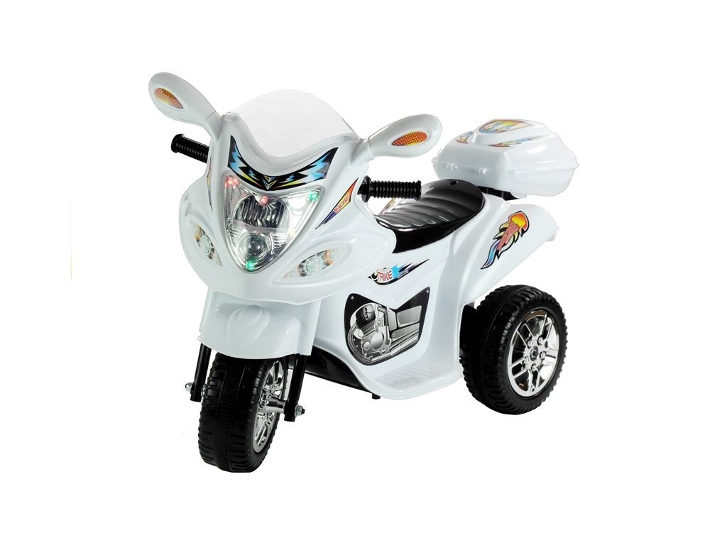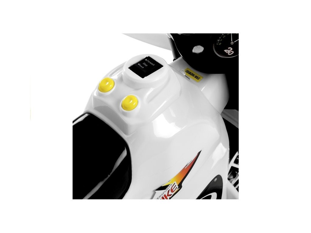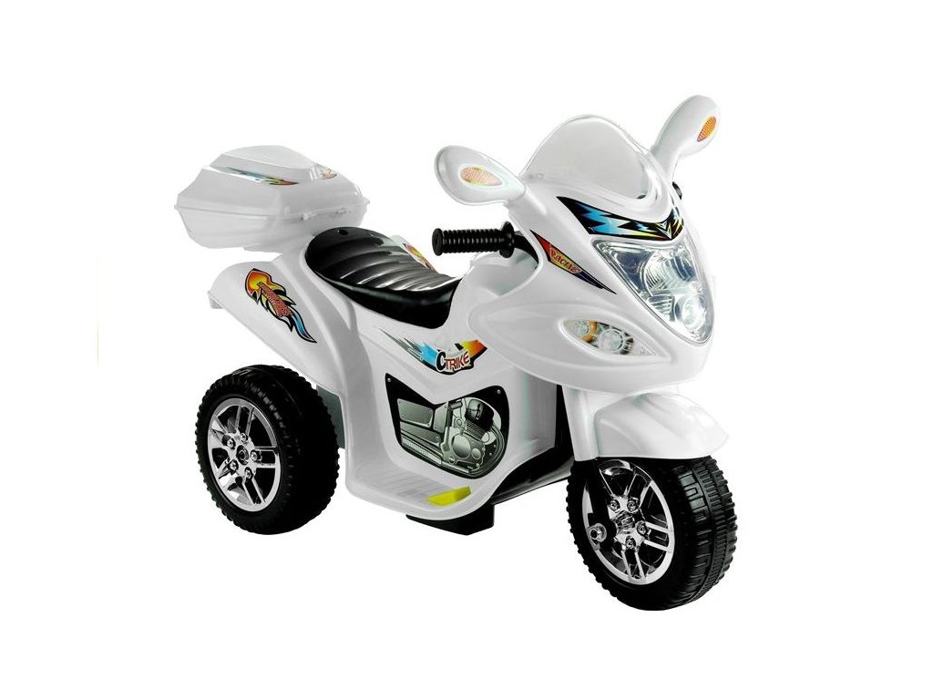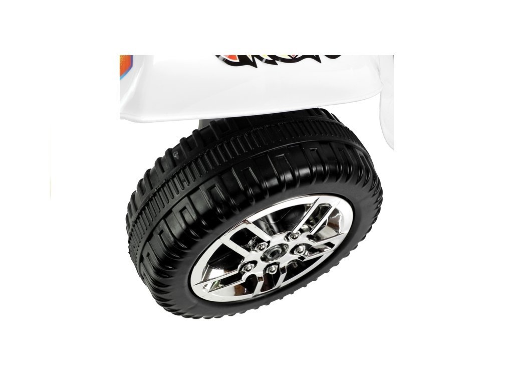 Racing White gyermek elektromos háromkerekű motor vonzó megjelenéssel. A menetirány megváltoztatható az előlapon található gombbal. 3-4 km/ó sebesség. Fény- és hanghatások. A zajcsökkentő kerekek gumicsíkkal vannak felszerelve, átmérőjük 19 cm. A háromkerekű motor minőségi anyagból készült és nagyon stabil. A vele való játék teljesen biztonságos. 3 éves kortól kisebb gyermekek számára, terhelhetőségük 20 kg-ig.