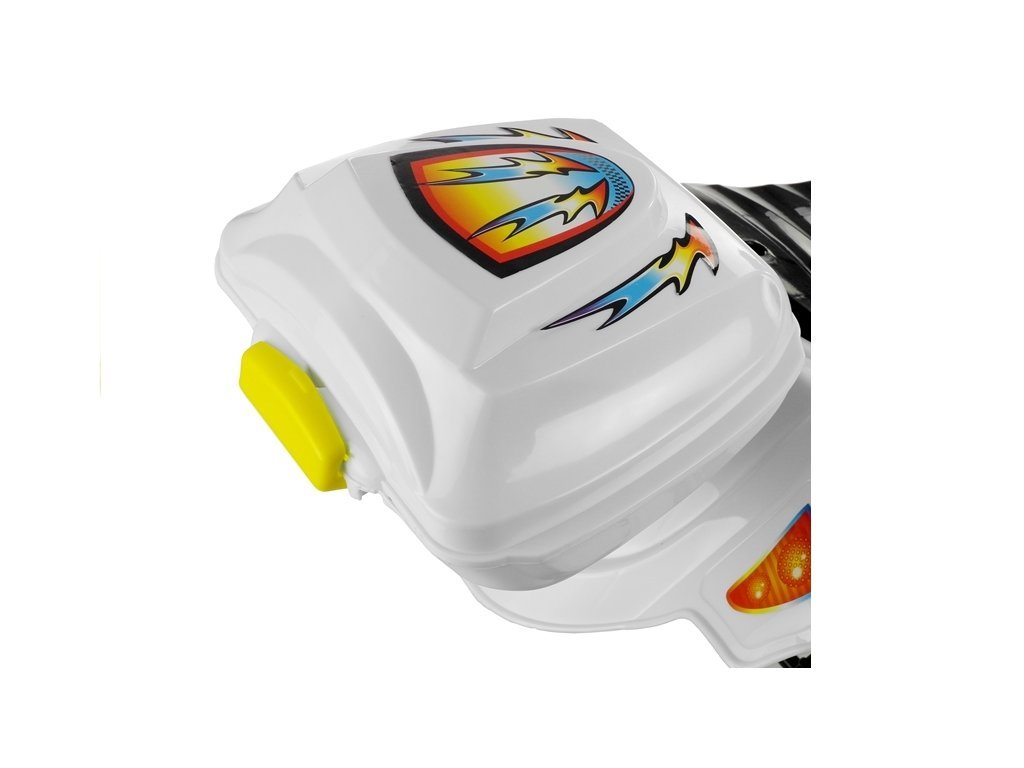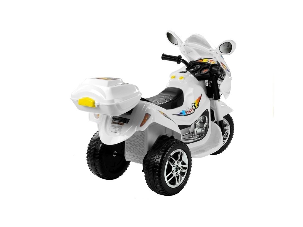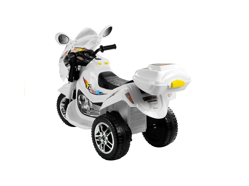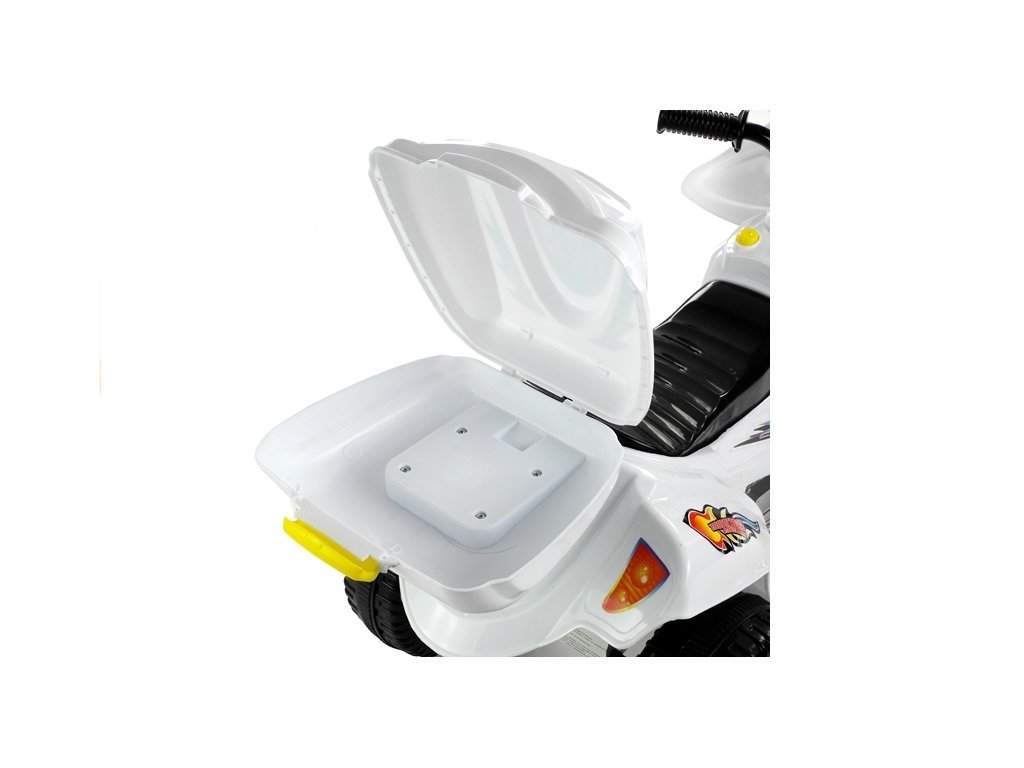 Racing White gyermek elektromos háromkerekű motor vonzó megjelenéssel. A menetirány megváltoztatható az előlapon található gombbal. 3-4 km/ó sebesség. Fény- és hanghatások. A zajcsökkentő kerekek gumicsíkkal vannak felszerelve, átmérőjük 19 cm. A háromkerekű motor minőségi anyagból készült és nagyon stabil. A vele való játék teljesen biztonságos. 3 éves kortól kisebb gyermekek számára, terhelhetőségük 20 kg-ig.