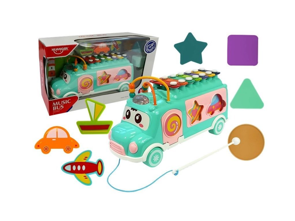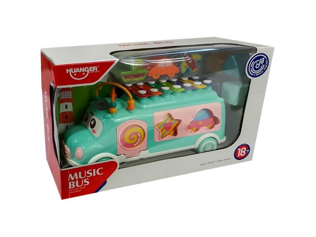 Haunger interaktív játékautó 3 az 1-ben Music Bus a legkisebb gyermekek számára készült. Az oldalfalak vannak felszerelve bedobó nyílásokkal a játékokhoz, amelyek a kocka részét képezik. A kocsi tetején pedig apró cimbalomok és egy gyöngyökkel ellátott labirintus található. A játék pálca egy zsinórral van rögzítve, hogy el ne vesszen. A szélvédőn a játékautó szeme látható és úgy néz ki, hogy nevet. Az autó ideális játék a gyermekek motoros képességeinek, tapintásának, látásának, logikus gondolkodásának, a színek és formák felismerésének fejlesztésére. A játék gyermekek számára készült 18 hónapos kortól.