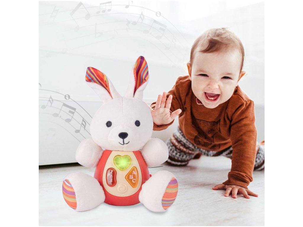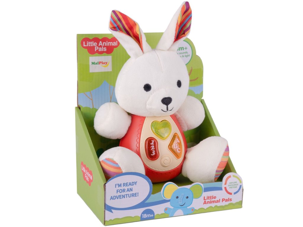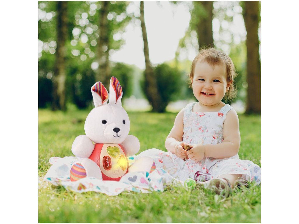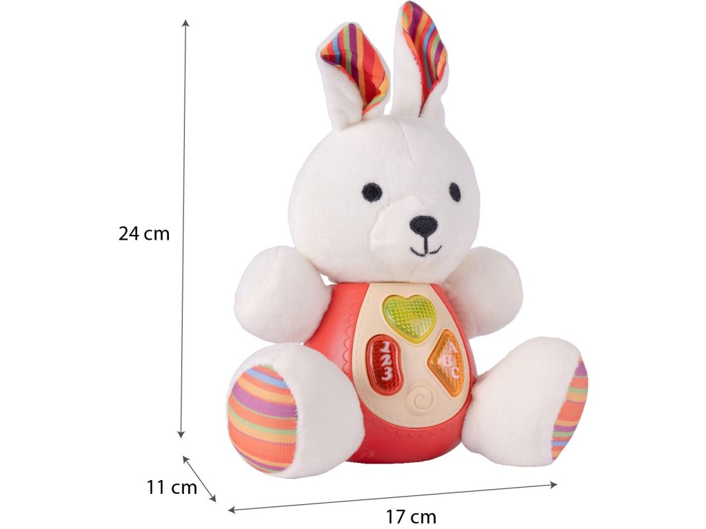 A Little Animal interaktív plüss nyúl ideális játék a legkisebb gyerekek számára. Puha, kellemes tapintású anyagból készült. A gombok megnyomása után elindulnak a fények, a hangok és a dallamok. A játék 18 hónapos kortól alkalmas.