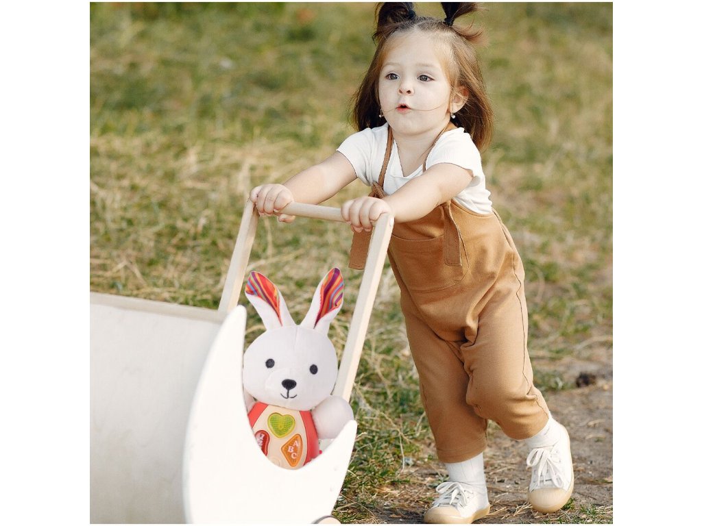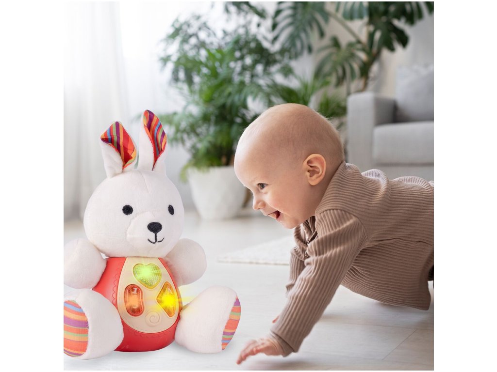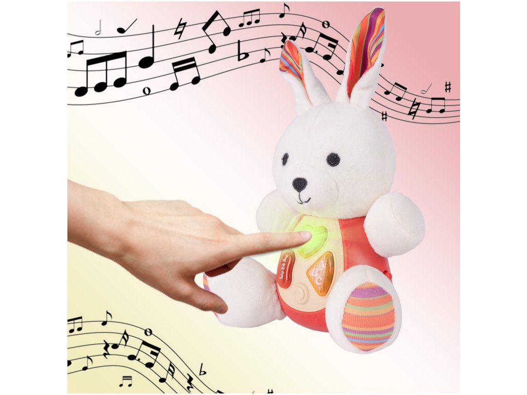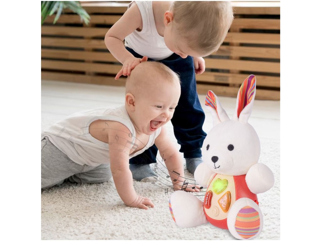 A Little Animal interaktív plüss nyúl ideális játék a legkisebb gyerekek számára. Puha, kellemes tapintású anyagból készült. A gombok megnyomása után elindulnak a fények, a hangok és a dallamok. A játék 18 hónapos kortól alkalmas.