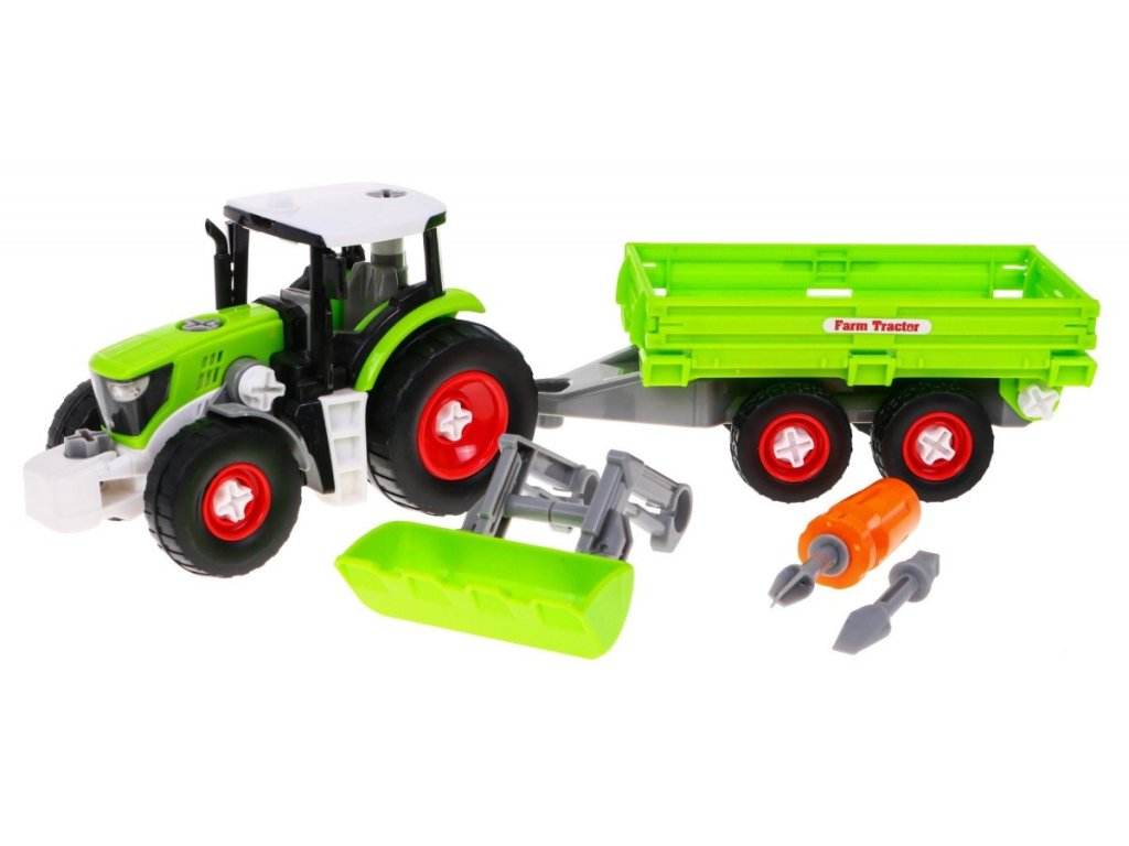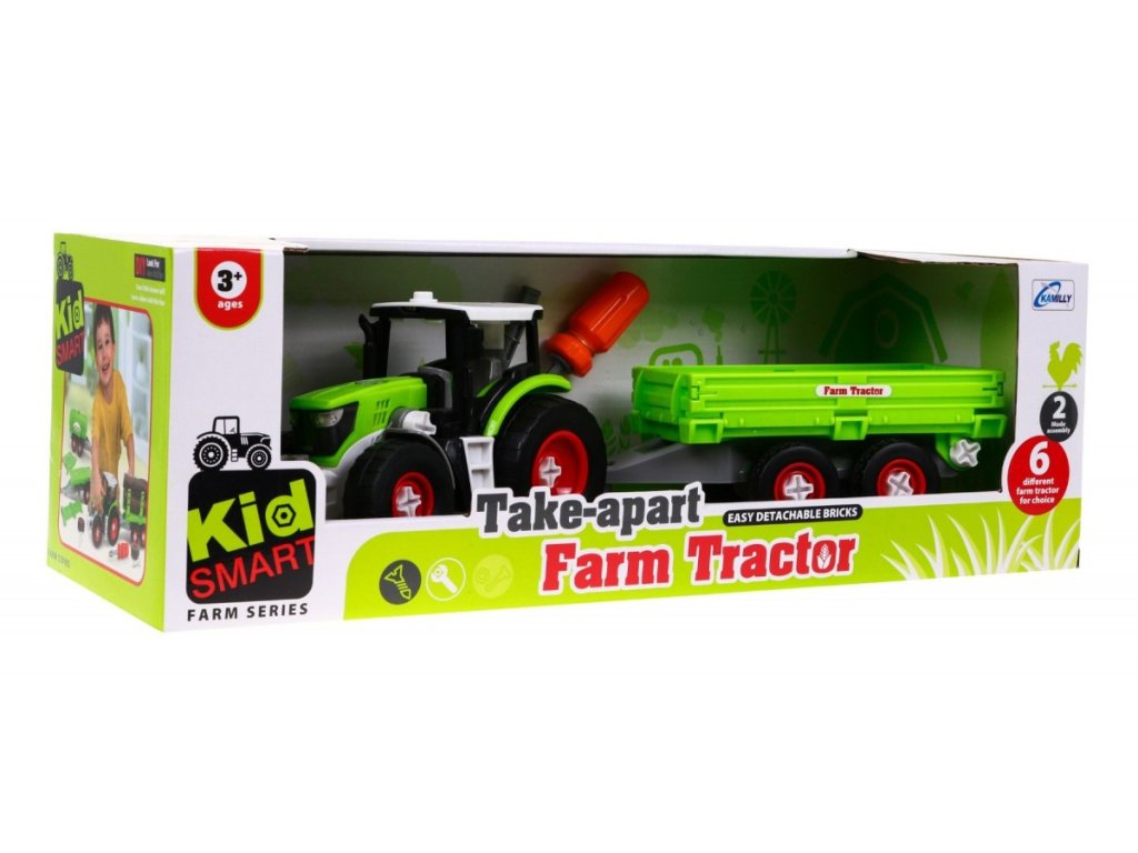 A Farm Tractor nagyméretű traktor pótkocsival ideális játék a kézi készségek és a logikus gondolkodás fejlesztésére. Teljesen szétszerelhető egyes alkatrészekre és csavarokra, majd a mellékelt csavarhúzó segítségével, két fejjel újra összeszerelhető. A szórakozás olyan végtelen. A traktor gyermekek számára készült 36 hónapos kortól.
