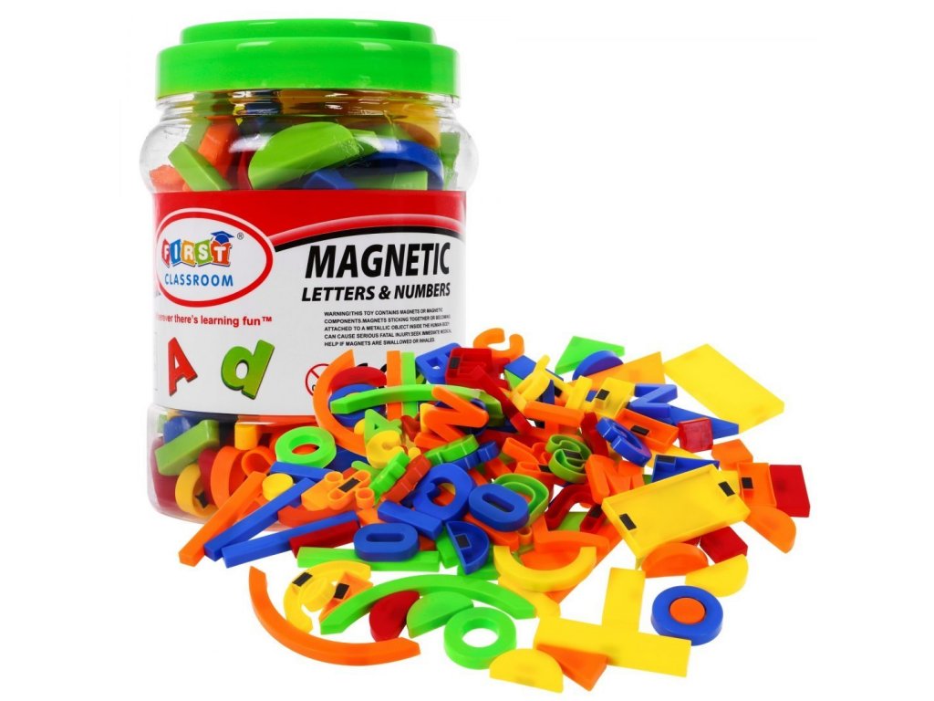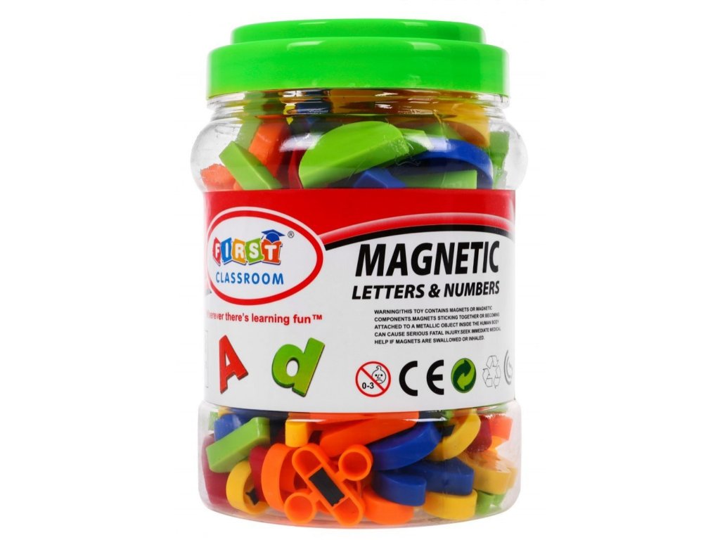 A mágnesekből, betűkből, számokból, matematikai szimbólumokból és geometriai alakzatokból álló 78 darabos First Classroom készlet gyermekeknek ajánlott 36 hónapos kortól. Már az első oktatáskor fejleszti a gyermekek kreativitását, logikus gondolkodását, valamint a színek és formák felismerését. 128 elemből különböző alakzatokat, házakat és hangulatjeleket lehet készíteni. Mágnes segítségével bármilyen mágneses táblára, hűtőszekrényre vagy vízszintes felületre felhelyezhető.