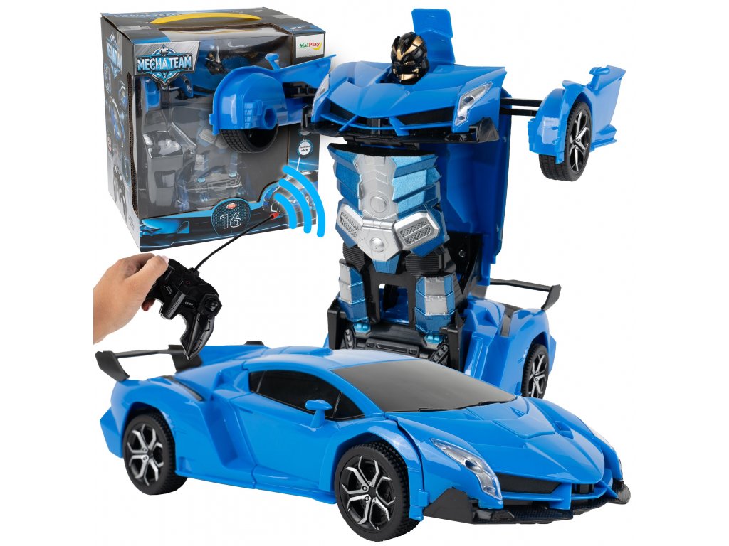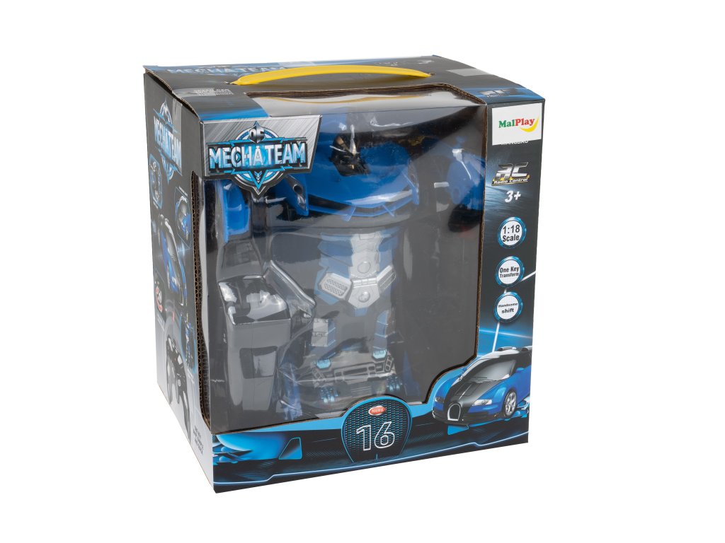 Mecha Team távirányítós robot - transzformátor tökéletes játék azoknak a gyerekeknek, akik szeretik a technológiai újításokat. Használható robotként vagy egyszerűen átalakítható sportkocsivá. Elsőkerék-hajtással és 40 MHz-es távirányítóval van felszerelve. A játék 3 éves kortól ajánlott.