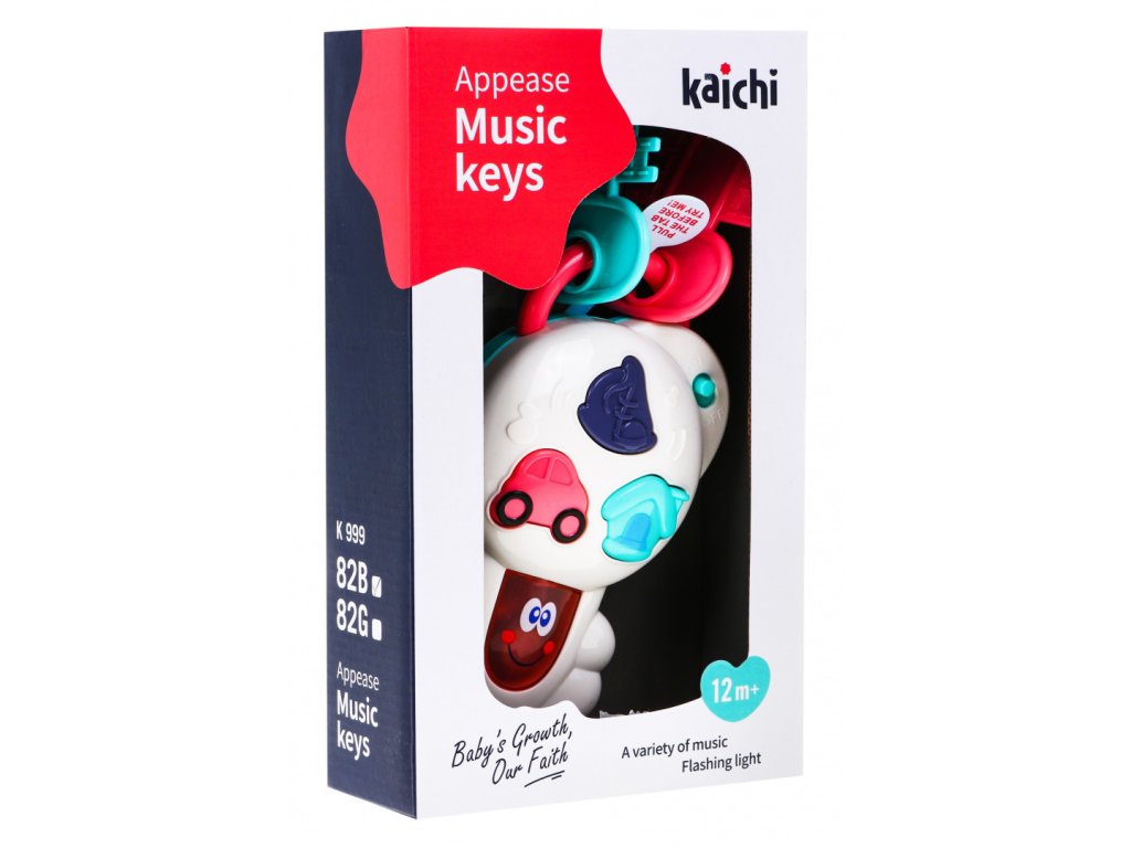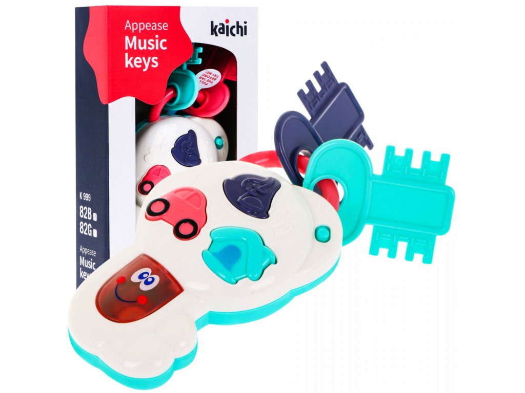 A Music Keys Interaktív babakulcs 12 hónapos babáknak ajánlott. Ez a játék jó hatással van a baba érzékszerveire, mint a látás hallás. A kulcson 3 db nyomógomb található autó, ház hangjegy alakban. A házikó megnyomásával megtanulhatja a baba, hogy a csengő a kutyaugatás, a kaputelefon az mind a házhoz otthonhoz tartozik, és mint jutalom baba zenét is hall utána. A kisautó megnyomásával a baba az autó nyitását csukását, hallhatja és a motor zúgást, végül ez a gomb is zenét rejteget. A harmadik hangjegy Önmagából értetődően zenét játszik babáknak. Minden nyomógomb lenyomáskor a fények is villognak. A nagyobb szórakozásért még két színes műanyag kulcs is tartozik a játékhoz.
