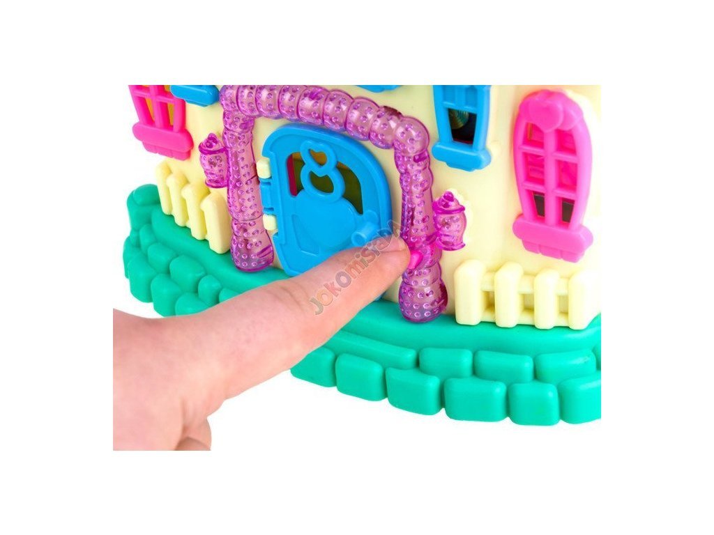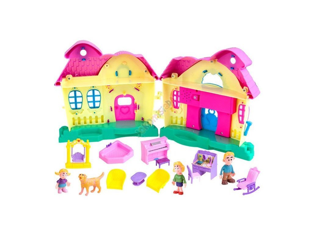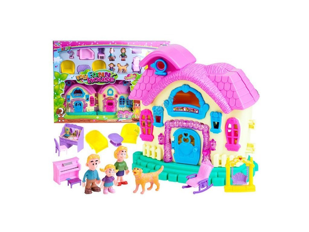A gyermekek összecsukhatójáték házikója figurákkal és teljes felszereléssel A My Funny House ideális játék minden lány vagy fiú számára. A ház 4 figurát tartalmaz: anya, apa, lánya és kutya. Komplett bútorokkal felszerelve foteleket, asztalt, széket, hintát, íróasztalt, zongorát, hintaszéket, lámpát és még kádat is talál. Nyílik a ház ajtaja. A szív alakú gomb megnyomása után megszólal a csengő, a kutya ugat és kigyulladnak az ajtólámpák. A játék műanyagból készült, színes kivitelben, és 3 évesnél idősebb gyermekek számára készült.
