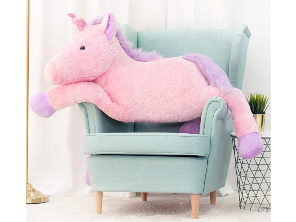 Nagy plüss egyszarvú Bruno minden gyermek álma. Kiváló minőségű és puha anyagból készült és nagyon jól meg van töltve kiváló minőségű plüssel, méretével minden gyermeket elbűvöl és vonz majd, de minden bizonnyal a barátnőnek is fog tetszeni születésnapi ajándékként vagy például Valentin-napra. Az egyszarvú magassága 150 cm.