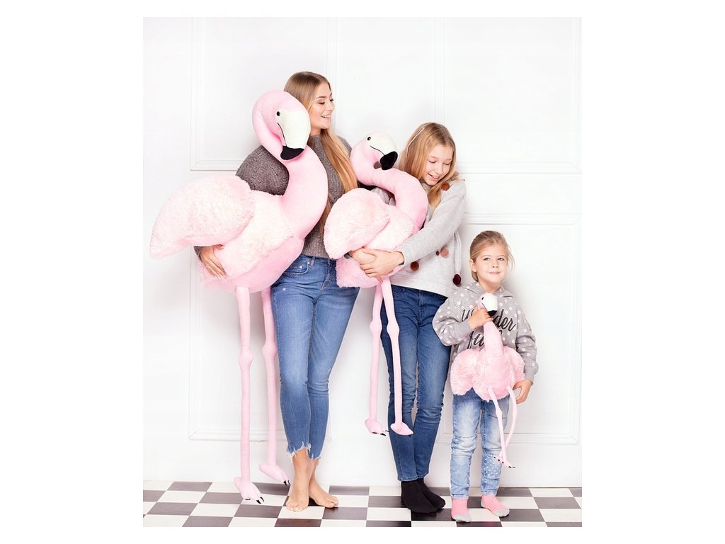 Nagy plüss flamingó Pinky minden gyermek álma. Kiváló minőségű és puha anyagból készült és nagyon jól meg van töltve kiváló minőségű plüssel, méretével minden gyermeket elbűvöl és vonz majd, de minden bizonnyal a barátnőnek is fog tetszeni születésnapi ajándékként vagy például Valentin-napra. A flamingó magassága 120 cm.