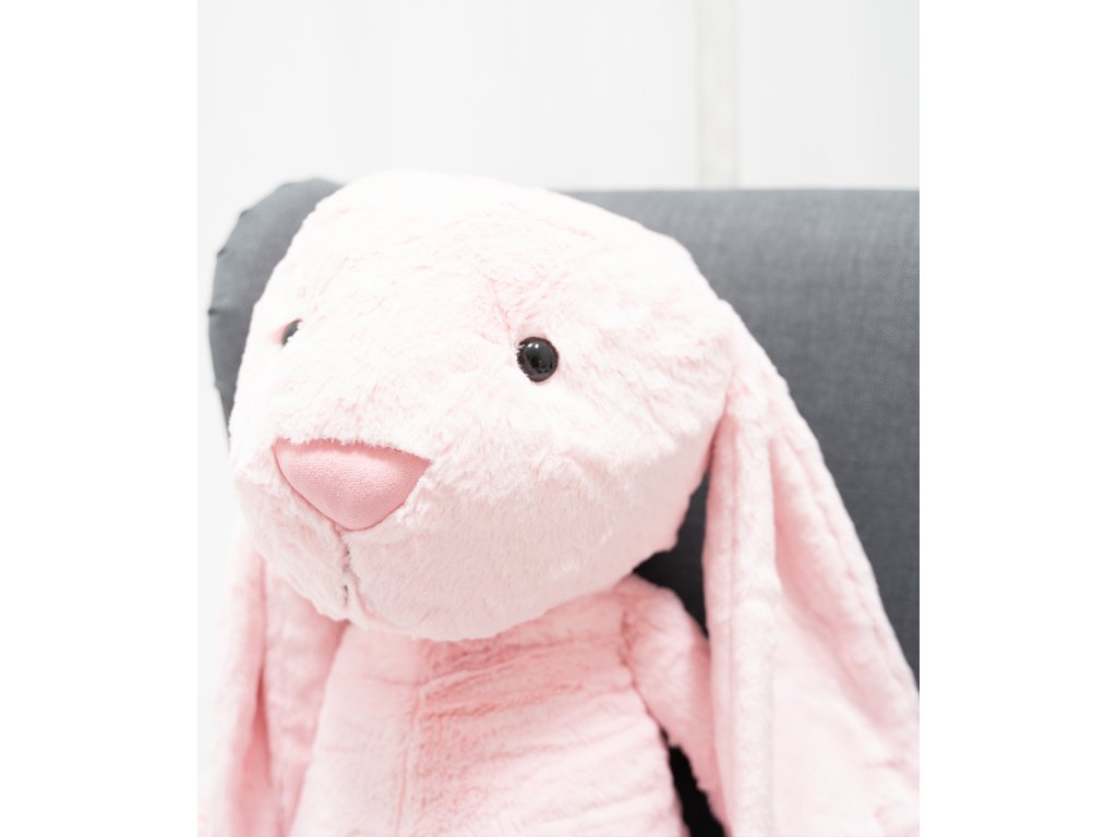 Nagy plüss nyuszi Figo minden gyermek álma. Kiváló minőségű és puha anyagból készült és nagyon jól meg van töltve kiváló minőségű plüssel, méretével minden gyermeket elbűvöl és vonz majd, de minden bizonnyal a barátnőnek is fog tetszeni születésnapi ajándékként vagy például Valentin-napra. A nyuszi magassága 50 cm.