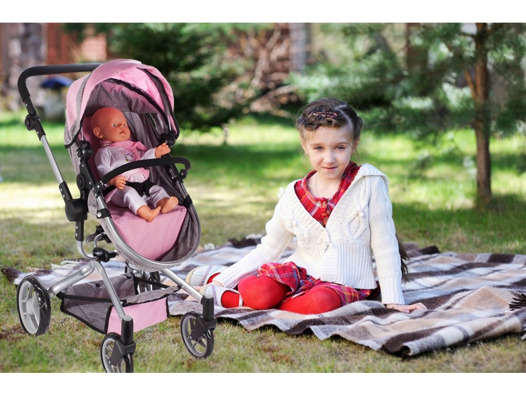 Princess kombinált játékbaba kocsi 2 az 1-ben - szürkés - rózsaszín