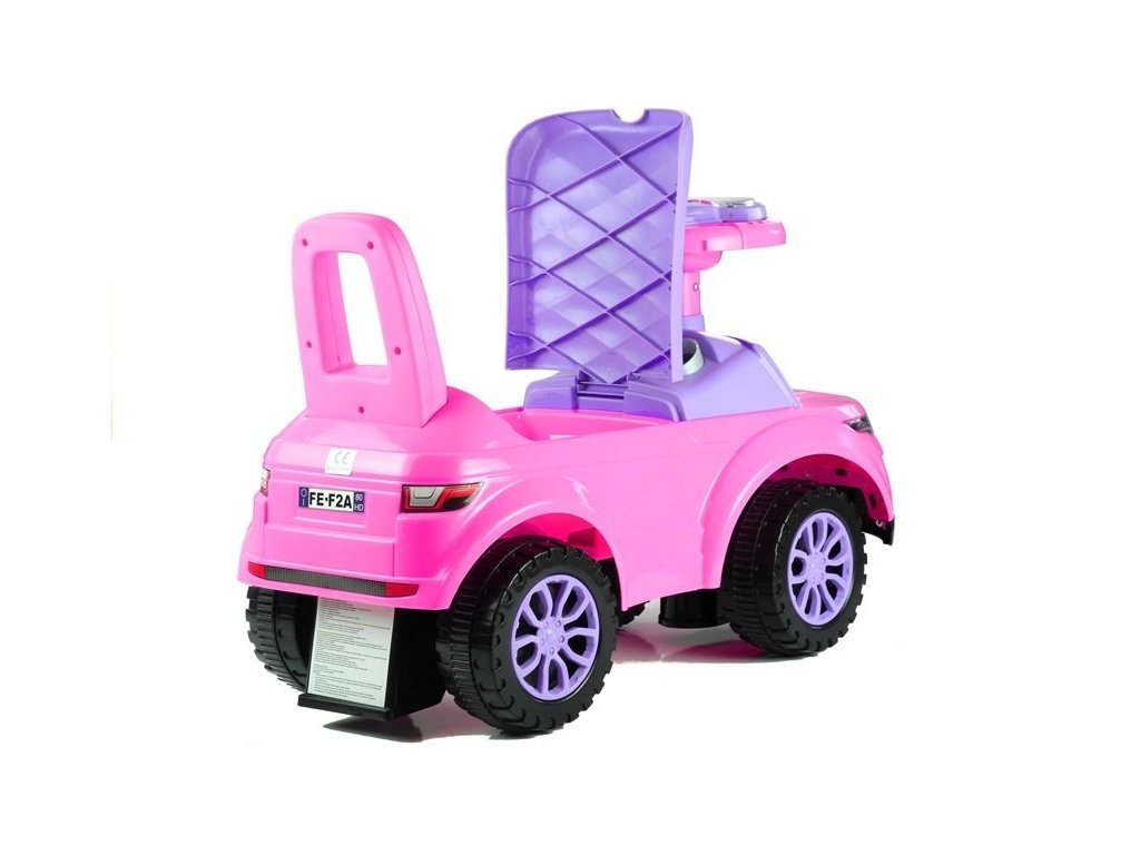 Minőségi gyermek lábbal hajtós autó, tömör műanyag kerekekkel és 14 cm átmérővel. A kényelmes ülés alatt van egy tárolóhely a játékoknak. A kormány interaktív hangokkal rendelkezik. Alkalmas 1,5-3 év közötti gyermekek számára. Elöl és hátul is fel van szerelve borulásgátlóval. A játék formája segít a gyermek motorikus képességeinek fejlesztésében és igazi sofőrnek is fogja érezni magát.