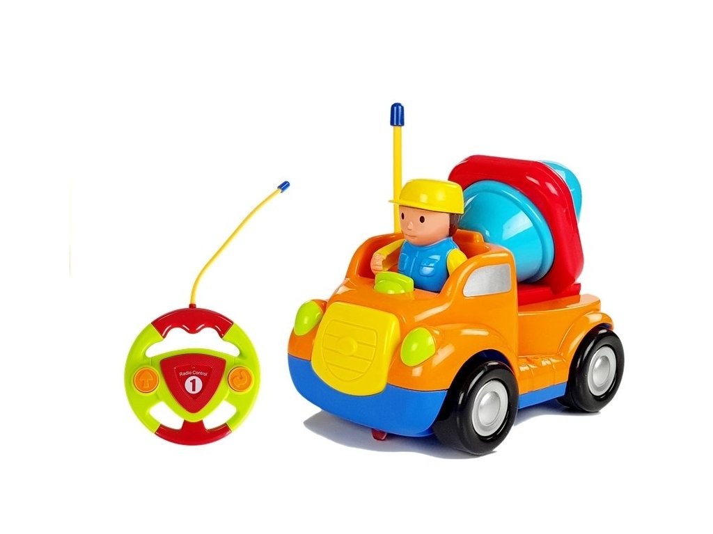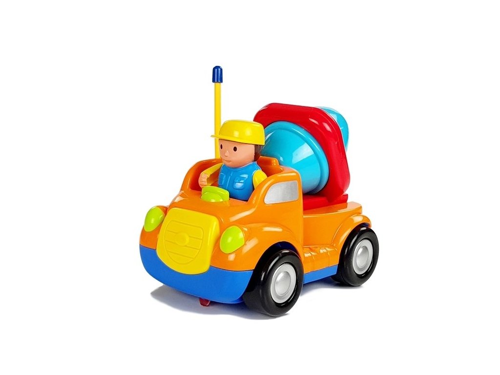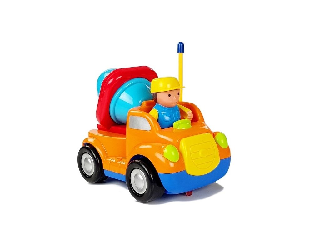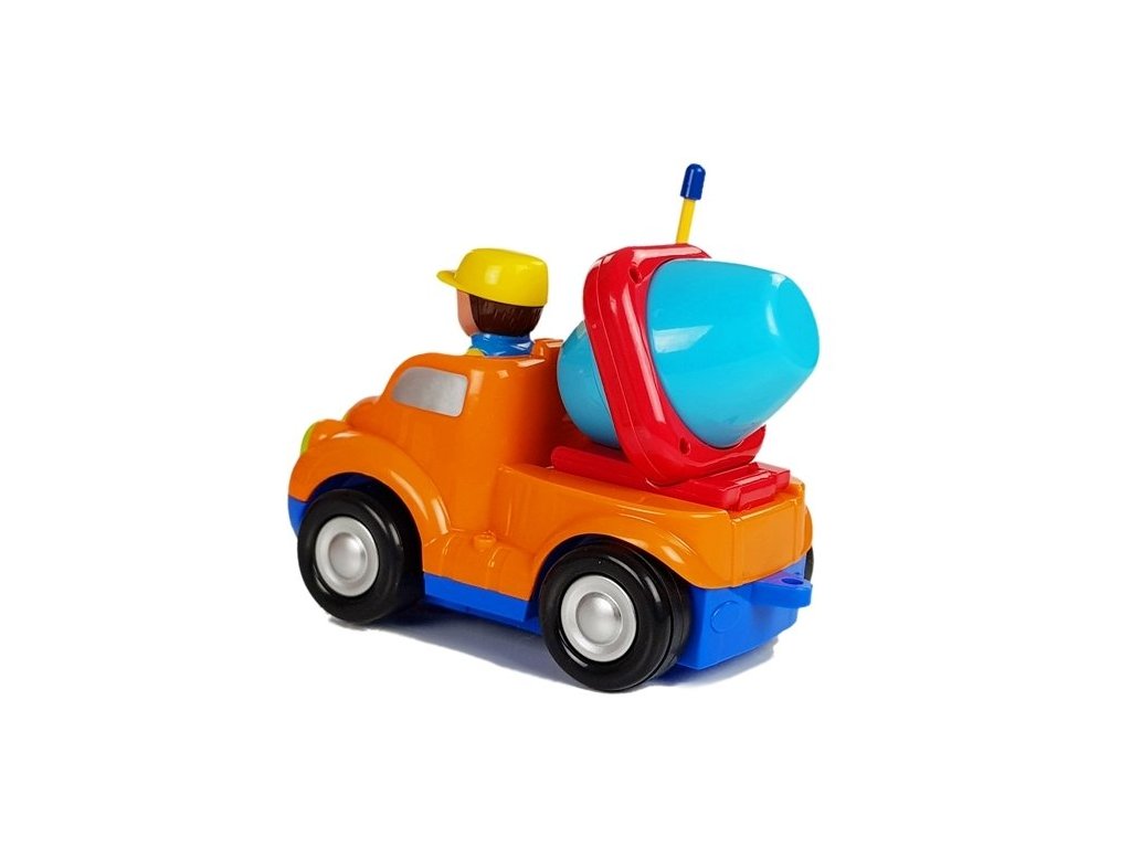 A távirányítós betonkeverő autót a legfiatalabb gyermekek számára tervezték. Kormánykerék alakú vezérléssel nagyon könnyen kezelhető. Két gombbal van felszerelve, amelyek vezérlik az irányítást. A főkapcsoló a betonkeverő autó alján található. A távirányítót és a betonkeverő autót egyaránt AA 1,5 V-os elemek működtetik, amelyek nem a csomag tartozékai. A sofőr is a csomag része. A betonkeverő műanyagból készült, CE tanúsítvánnyal rendelkezik és 18 hónapos kortól ajánlott a gyermekeknek.