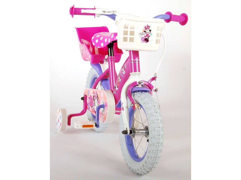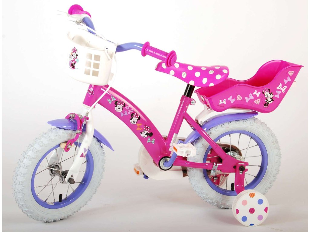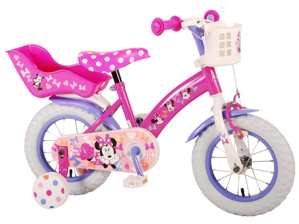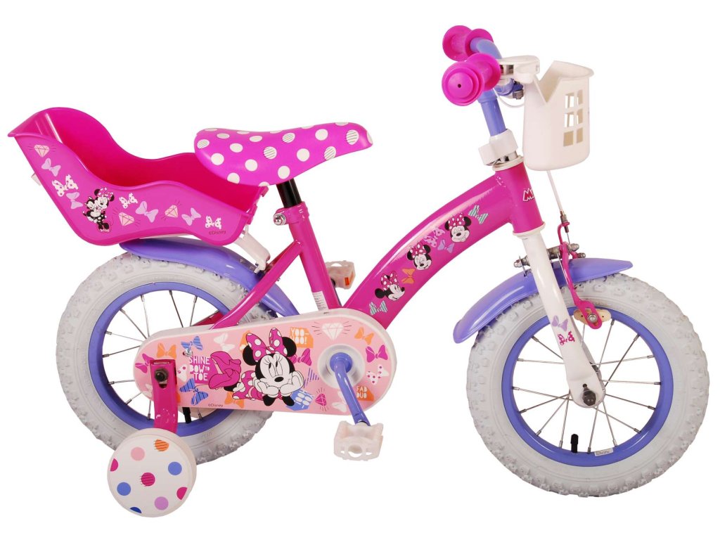 A Volare eredeti gyermekkerékpárt Minnie Mouse (Disney licensz) 12 colos felnivel a legkisebbeknek tervezték 3-4,5 éves korig és 95 cm magasságig. A kerékpár pótkerekekkel van felszerelve, így a gyermek az első úttól kezdve biztonságban és stabilan érezheti magát. A kerékpár 2 fékkel van felszerelve. A hátsó "torpedó" fék lehetővé teszi a fékezést a pedálok hátranyomásával vagy az első kézifék használható. Ez a kerékpár láncfedéllel rendelkezik, amely a teljes láncot lefedi a nadrág vagy a cipőfűzők nemkívánatos betekeredése ellen. Az ülés és a kormány is állítható magasságú. A kormányon van egy műanyag kosár. Hátul a jatékbaba tartó található.