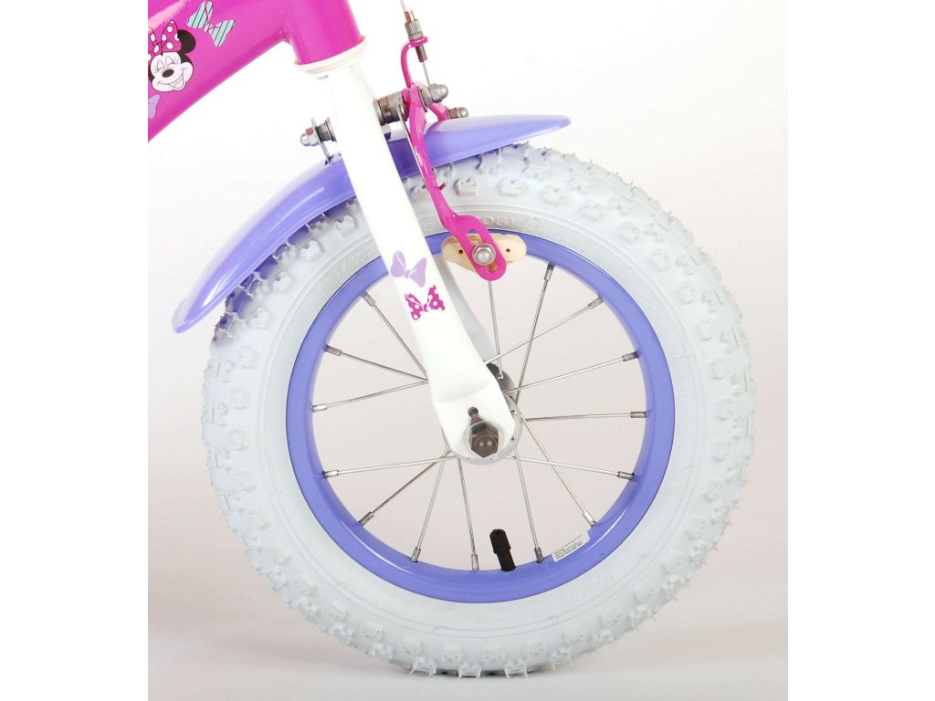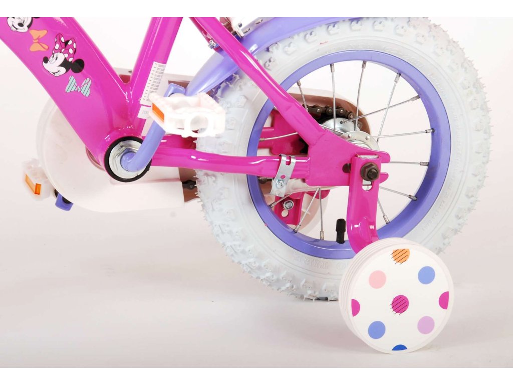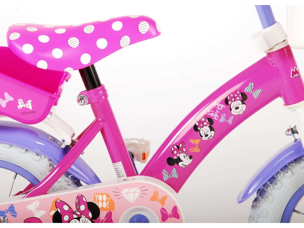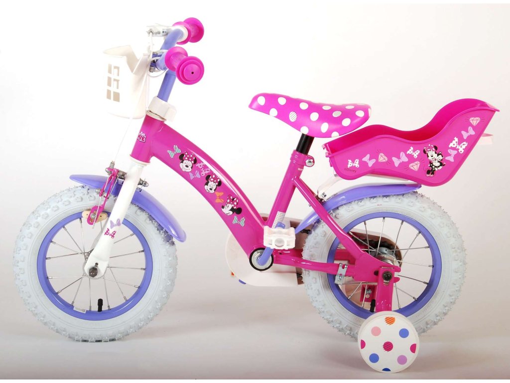 A Volare eredeti gyermekkerékpárt Minnie Mouse (Disney licensz) 12 colos felnivel a legkisebbeknek tervezték 3-4,5 éves korig és 95 cm magasságig. A kerékpár pótkerekekkel van felszerelve, így a gyermek az első úttól kezdve biztonságban és stabilan érezheti magát. A kerékpár 2 fékkel van felszerelve. A hátsó "torpedó" fék lehetővé teszi a fékezést a pedálok hátranyomásával vagy az első kézifék használható. Ez a kerékpár láncfedéllel rendelkezik, amely a teljes láncot lefedi a nadrág vagy a cipőfűzők nemkívánatos betekeredése ellen. Az ülés és a kormány is állítható magasságú. A kormányon van egy műanyag kosár. Hátul a jatékbaba tartó található.