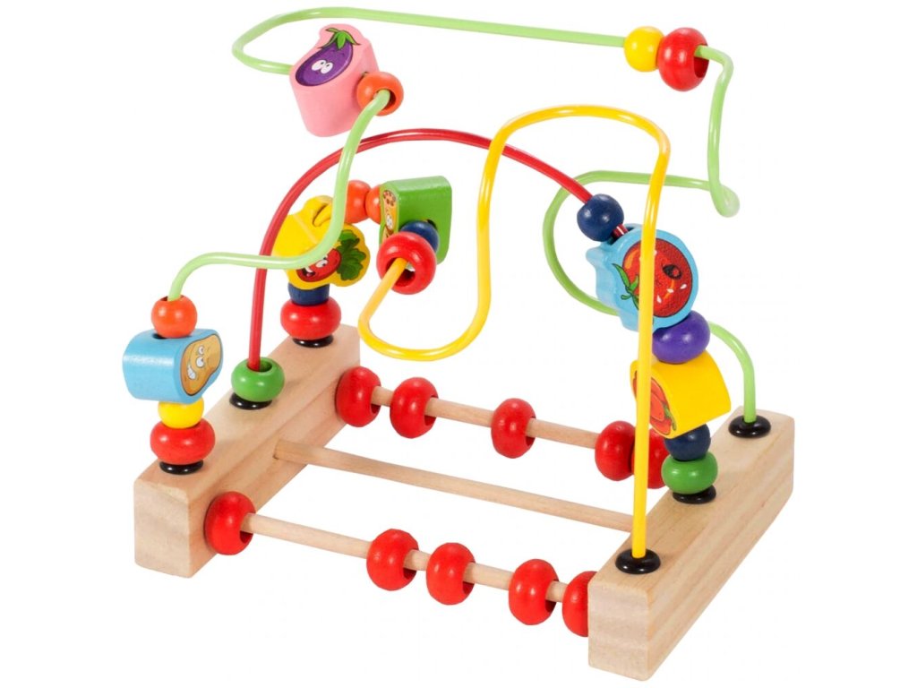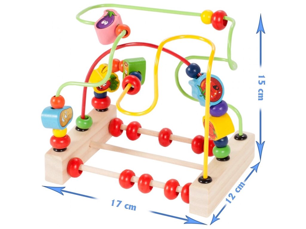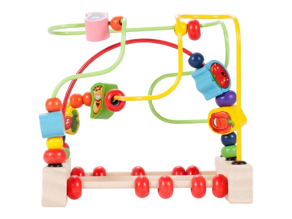 Fa oktatójáték - Wooden Beads labirintus. A játék fejleszti a legkisebb gyerekek fantáziáját, a színek és formák felismerését, a logikus gondolkodást, valamint fejleszti a kezek és az ujjak motorikus készségeit. A 3 színes labirintus egy stabil fa alapra van helyezve, és többféle színes gyöngyöt lehet átvinni rajta. Fából készült, éles szélek nélkül. A játék 36 hónapos kortól alkalmas.